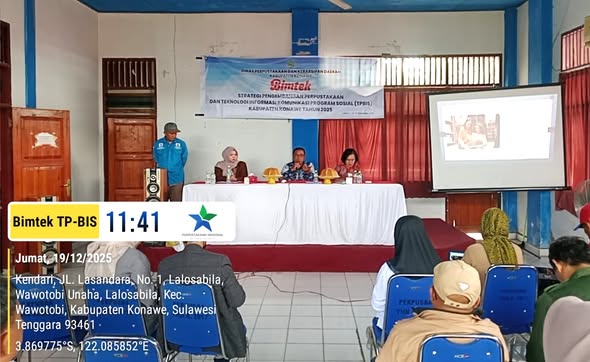 Dinas Perpustakaan dan Kearsipan Kabupaten Konawe menyelenggarakan kegiatan Bimbingan Teknis (Bimtek) Strategi Pengembangan Perpustakaan dan Teknologi Informasi Komunikasi Program Sosial (TPBIS) pada Jumat, 19/12/ 25.