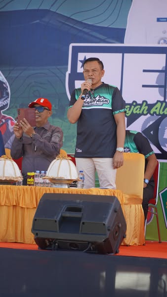 Bupati Konawe, Yusran Akbar, ST., dalam sambutannya menyampaikan rasa syukur dan apresiasi atas terlaksananya kegiatan Adventure Trail Jelajah Alam Konawe Raya yang diikuti lebih dari 700 peserta dari berbagai daerah, mulai dari Sulawesi Tenggara, Sulawesi Selatan, Morowali, hingga Jawa dan Kalimantan.