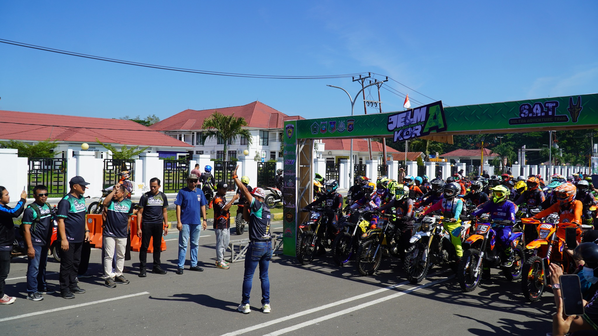 Acara pembukaan berlangsung meriah dengan pelepasan rider secara simbolis oleh Bupati Konawe. Antusiasme peserta dan masyarakat yang hadir menambah semarak kegiatan Adventure Trail Jelajah Alam Konawe Raya 2025 ini.