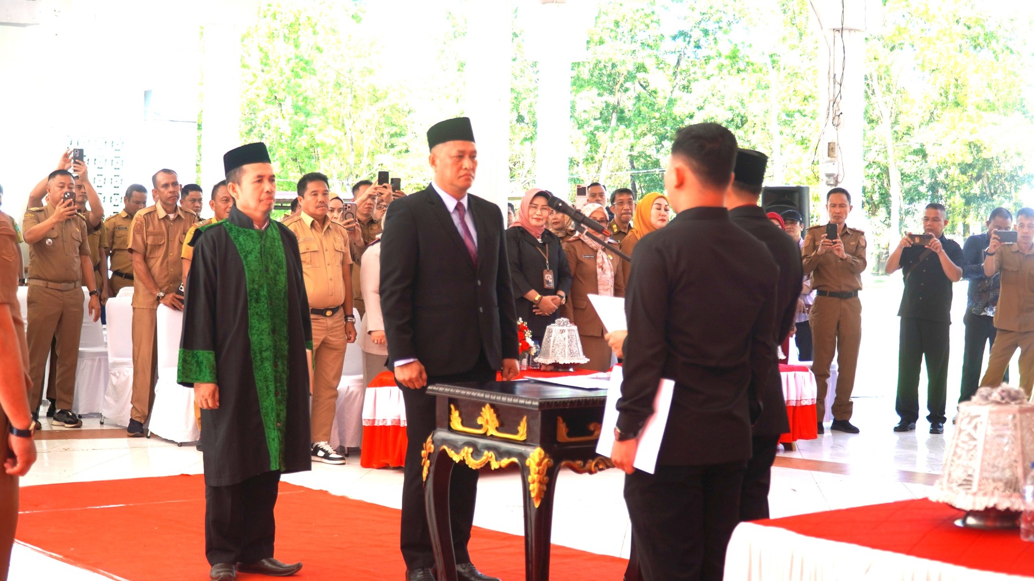 Acara pengukuhan berlangsung khidmat, ditandai dengan pembacaan naskah pelantikan dan pengucapan sumpah/janji jabatan, yang disaksikan langsung oleh unsur Forkopimda, para Asisten, Kepala OPD, serta tamu undangan lainnya.