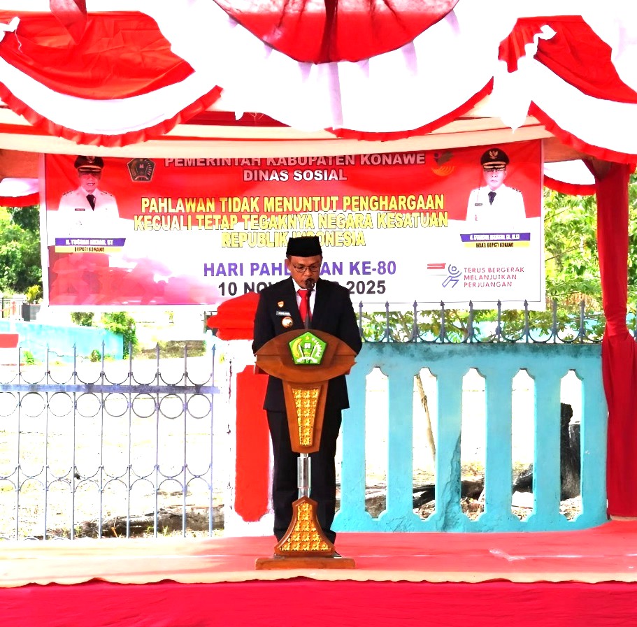 Dalam amanatnya, Bupati Konawe Yusran Akbar, ST membacakan naskah pidato yang mengajak seluruh masyarakat untuk meneladani semangat perjuangan para pahlawan bangsa. “Hari ini, di bawah langit Indonesia yang merdeka, kita menundukkan kepala penuh hormat mengenang para pahlawan bangsa. Mereka bukan sekadar nama yang terukir di batu nisan, melainkan cahaya yang menerangi jalan kita hingga hari ini. Dari Surabaya hingga Banda Aceh, dari Ambarawa hingga Biak, mereka berjuang bukan demi dirinya sendiri, tetapi demi masa depan bangsa yang bahkan belum mereka kenal, yaitu kita semua yang berdiri di sini hari ini,” ujarnya.