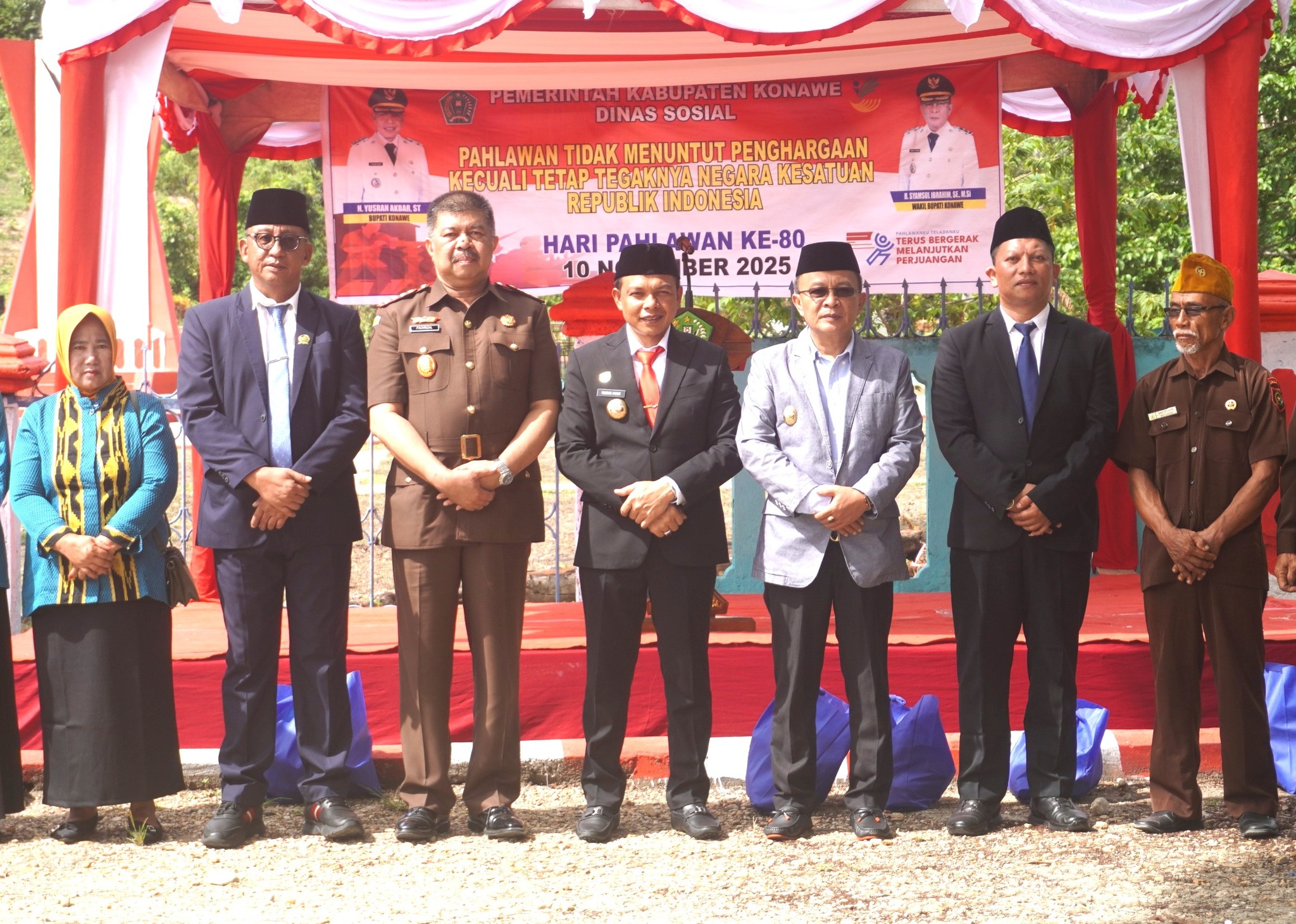 Usai pelaksanaan upacara, kegiatan dilanjutkan dengan tabur bunga di makam para pahlawan sebagai bentuk penghormatan dan penghargaan atas jasa-jasa mereka yang telah gugur membela Tanah Air. Peringatan Hari Pahlawan di Kabupaten Konawe tahun ini mengusung tema nasional “Pahlawanku Teladanku, Terus Bergerak, Melanjutkan Perjuangan.” Tema tersebut diharapkan menjadi pengingat bahwa perjuangan generasi sekarang adalah melawan kebodohan, kemiskinan, dan berbagai bentuk ketidakadilan sosial demi mewujudkan Konawe yang lebih maju dan sejahtera. Upacara berlangsung dengan tertib dan penuh khidmat, diakhiri dengan doa bersama untuk para arwah pahlawan bangsa.
