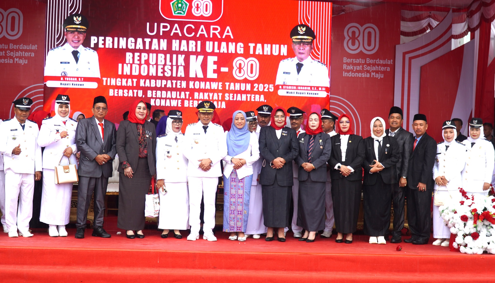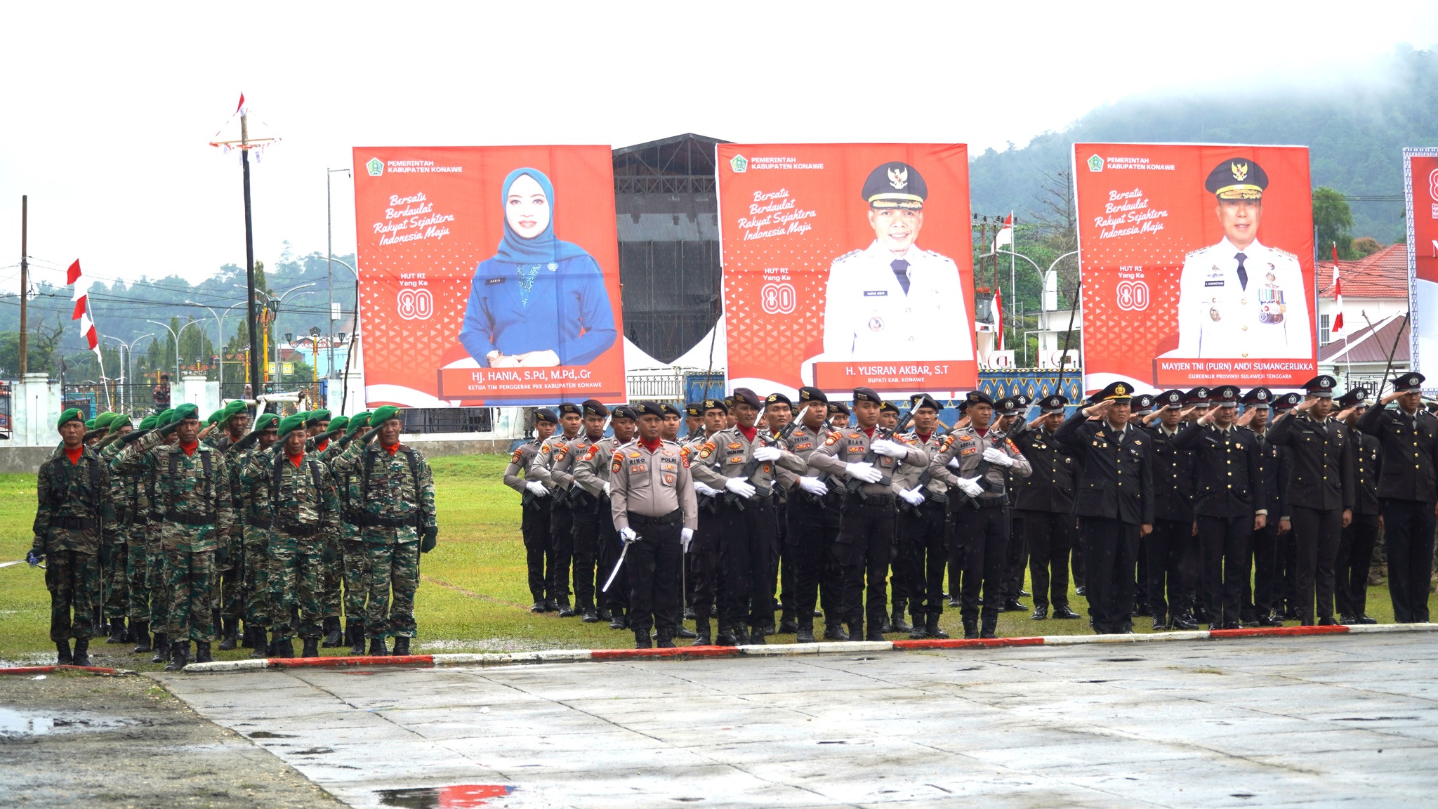 Upacara HUT RI ke-80 di Kabupaten Konawe ini semakin menegaskan bahwa semangat kemerdekaan tetap berkobar di hati masyarakat, sekalipun harus digelar di bawah derasnya hujan.