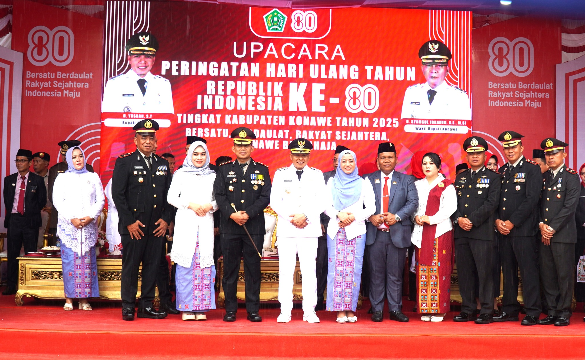 Dalam Sambutannya, Bupati Yusran Akbar menyampaikan bahwa peringatan HUT ke-80 RI menjadi momentum penting untuk merefleksikan perjuangan para pahlawan bangsa. Ia menekankan pentingnya semangat persatuan, kerja keras, dan gotong royong dalam membangun Konawe menuju daerah yang lebih maju dan sejahtera.