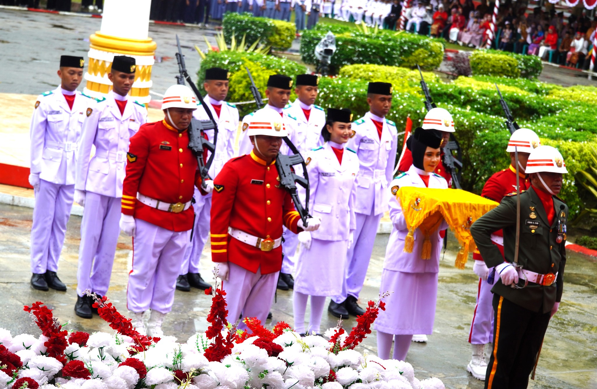 Bupati Konawe H.Yusran Akbar ST, tampil sebagai Inspektur Upacara berlangsung khidmat dengan dihadiri Sekda Konawe, Ketua DPR Konawe serta Jajarannya , Forum Koordinasi Pimpinan Daerah (Forkopimda), pimpinan Organisasi Perangkat Daerah (OPD), ASN, TNI-Polri, Lurah Se-Kab.Konawe, Kepala Desa Se-Kab.Konawe, Pelajar, serta perwakilan masyarakat dari berbagai kecamatan.