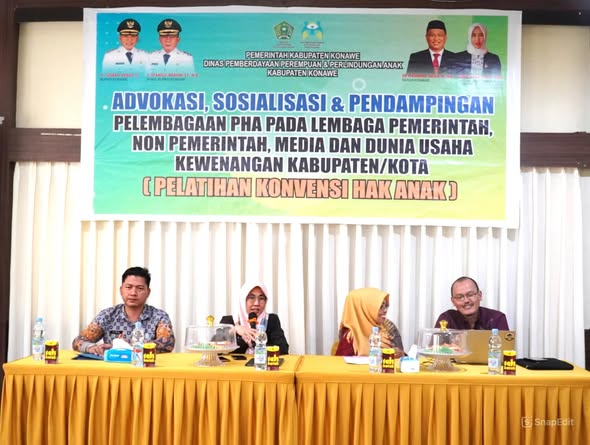 Dinas Pemberdayaan Perempuan dan Perlindungan Anak (P3A) Kabupaten Konawe kembali menunjukkan komitmennya dalam memperkuat pelindungan terhadap anak melalui penyelenggaraan kegiatan advokasi dan sosialisasi mengenai pelembagaan Perlindungan Hak Anak (PHA). Kegiatan ini melibatkan berbagai unsur, mulai dari lembaga pemerintah, organisasi nonpemerintah, media massa, hingga dunia usaha, sebagai upaya bersama menciptakan lingkungan yang aman dan ramah anak di Kabupaten Konawe.