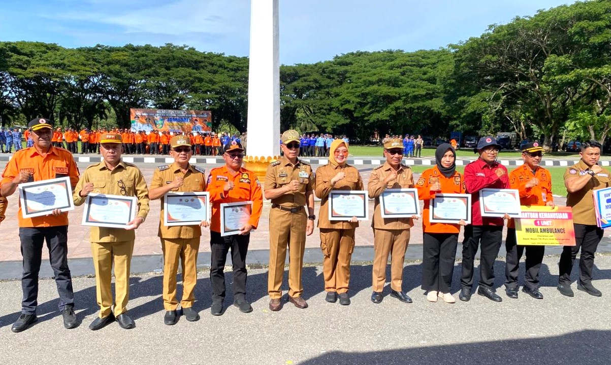 Konawe – Pemerintah Kabupaten Konawe kembali mendapatkan apresiasi atas komitmennya dalam pengurangan risiko bencana. Pada kegiatan Apel Siaga dan Simulasi Gempa Bumi dan Tsunami, Gubernur Sulawesi Tenggara secara resmi menyerahkan piagam penghargaan kepada Pemerintah Kabupaten Konawe atas keberhasilannya membentuk Desa Tangguh Bencana (Destana) di wilayahnya.