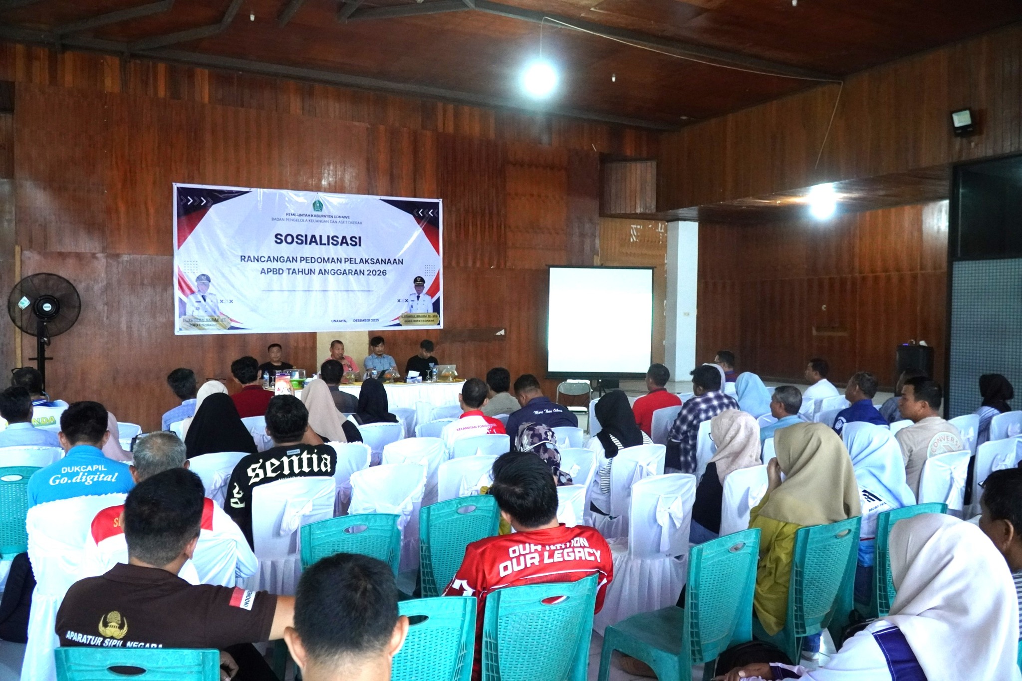 Dalam sambutannya, Kepala BPKAD menyampaikan rasa syukur sekaligus memberikan informasi bahwa dokumen APBD 2026 masih berada dalam tahap evaluasi di tingkat provinsi. Ia berharap proses tersebut dapat diselesaikan pada 31 Desember sehingga dokumen pelaksanaan anggaran (DPA) dan berbagai SK terkait dapat ditetapkan pada 2 Januari. Sosialisasi ini dinilai penting karena memasuki tahun kedua pelaksanaan visi dan misi Bupati dan Wakil Bupati, yakni “Membangun Desa Menata Kota”. Dengan demikian, setiap OPD diharapkan mampu menyesuaikan program kerja sesuai arah kebijakan pembangunan daerah.