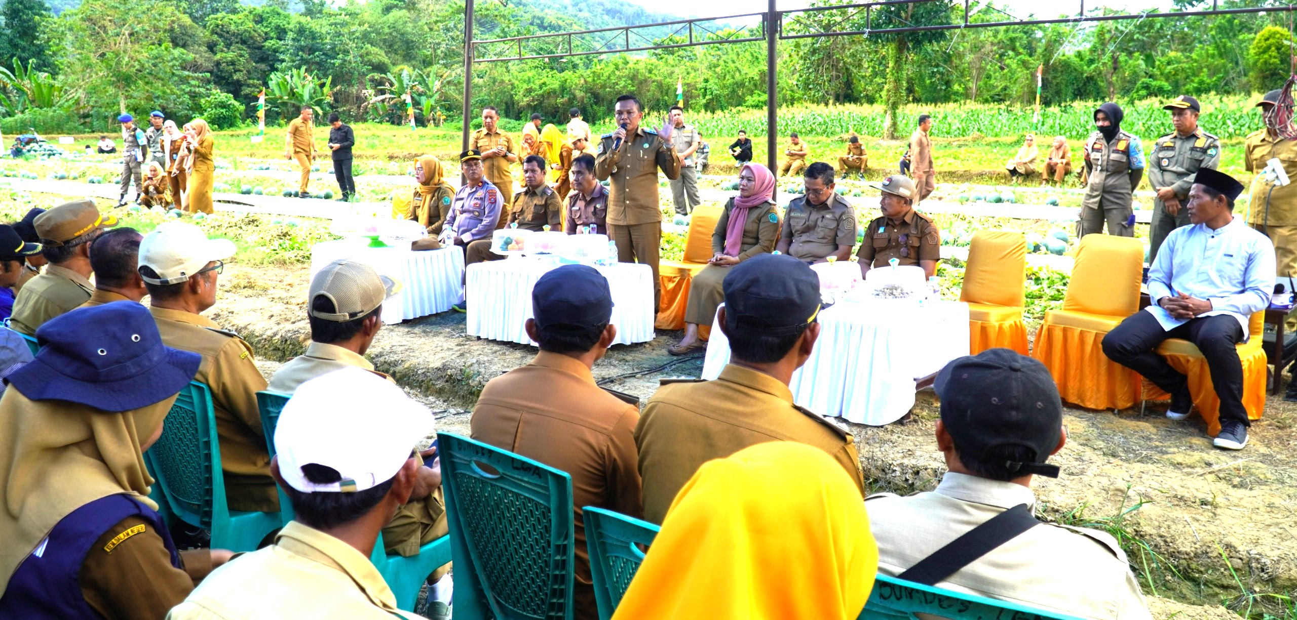 Kehadiran Bupati disambut antusias oleh para petani, serta warga yang turut bergembira menyaksikan hasil panen melimpah di wilayah tersebut.