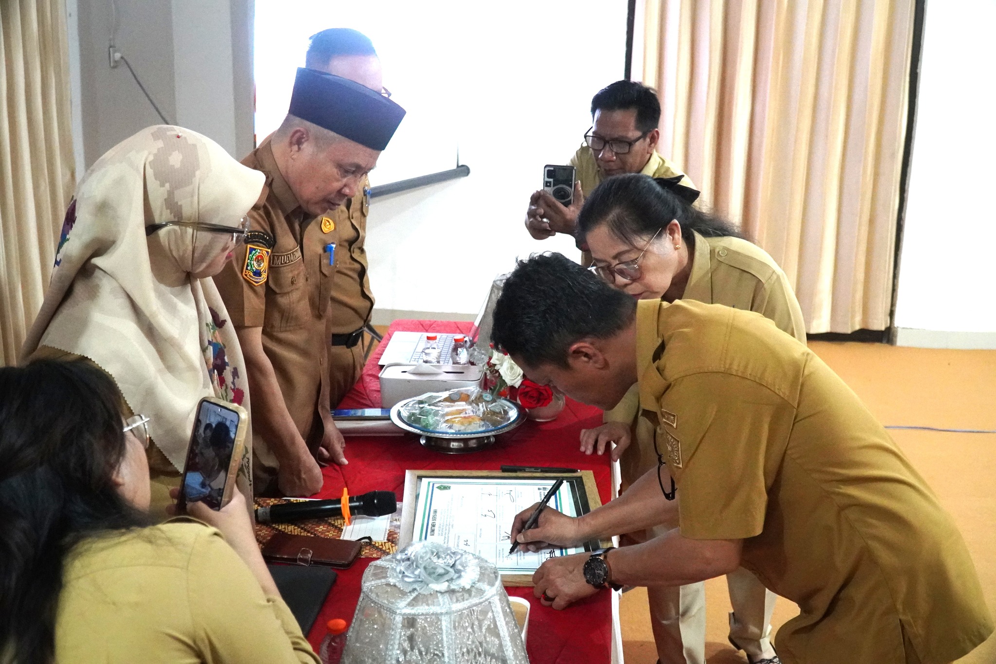 Sebagai tindak lanjut dari penguatan koordinasi, kegiatan tersebut dirangkaikan dengan penandatanganan komitmen bersama oleh seluruh unsur yang terlibat. Kesepakatan ini menjadi dasar kerja sama dalam memperkuat pengawasan pangan segar maupun pangan olahan agar tetap higienis, aman, dan layak konsumsi.